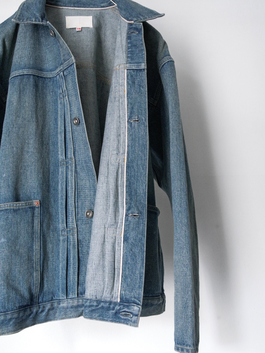 A denim jacket crafted from selvedge denim, slowly and carefully woven in Okayama, Japan.