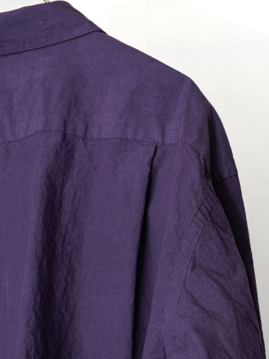 ドレスシャツを基盤とした上品なパターンメイキングを軸にしながら、程よくドロップしたショルダーライン、ゆったりとした身幅、力の抜けたルーズなサイズ感が特徴です。