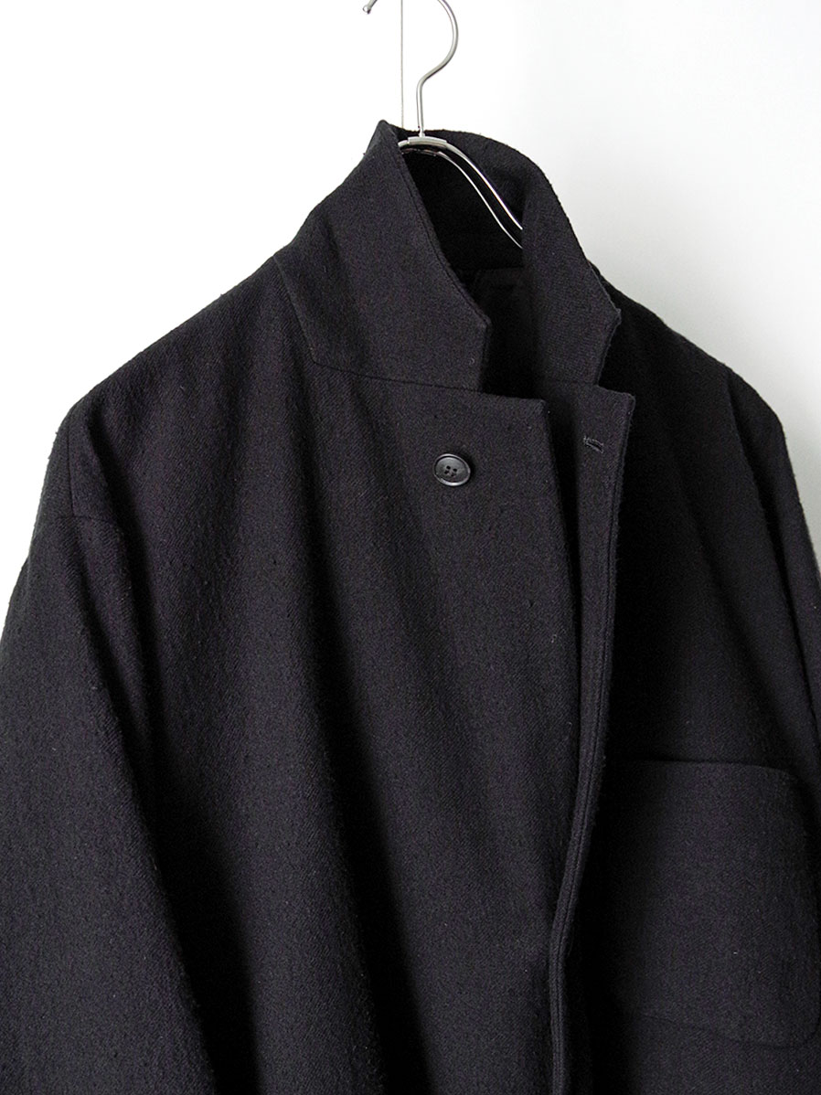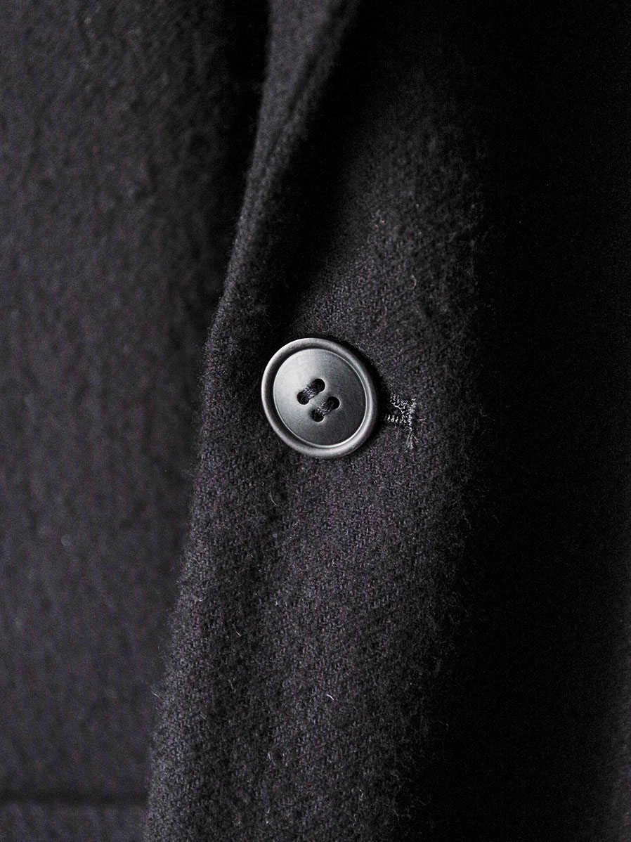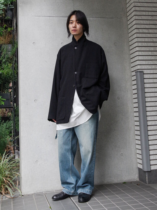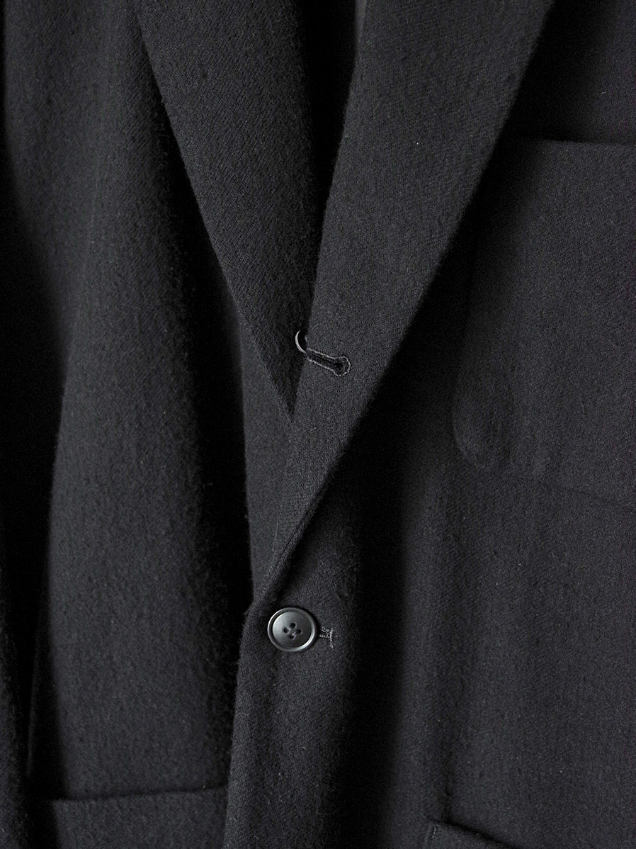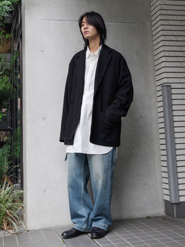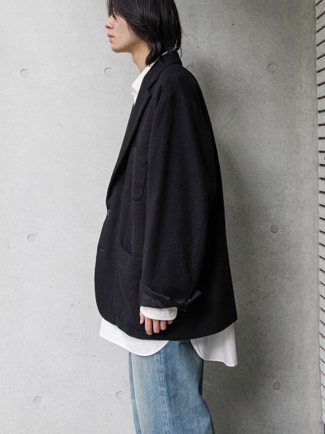 着用を重ねることで起毛感はさらに味わいを増し、よりソフトで滑らかな肌触りに変化。まるで長年眠っていたアンティーク生地のように、奥行きある雰囲気へと育ちます。身体に馴染みながら経年変化を楽しめる、唯一無二のテーラードジャケットです。
