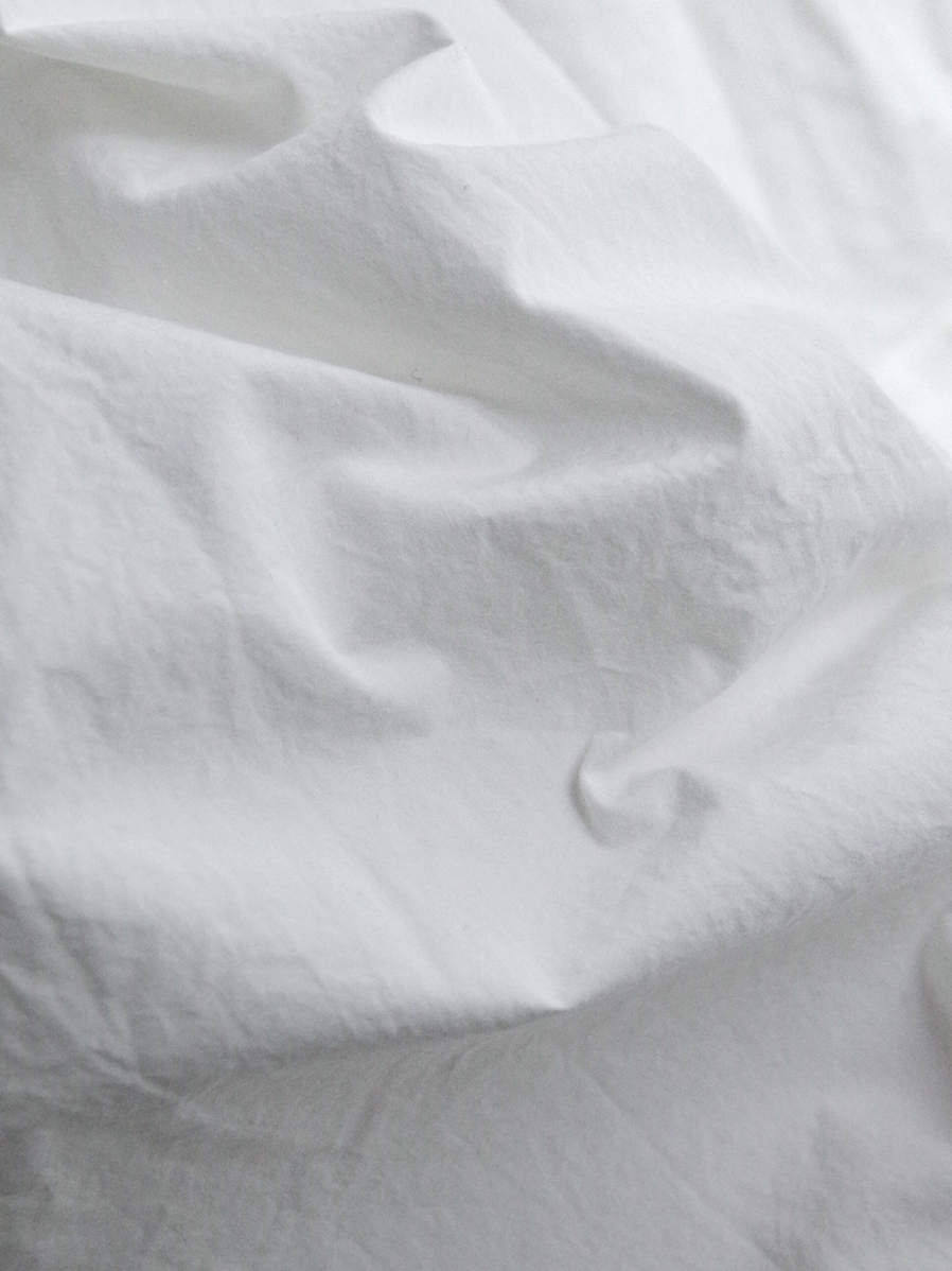 Woven to an extreme density with fine yarns, it produces a distinctive crisp rustling sound as it moves, offering a unique tactile experience as if you were truly wrapping yourself in cloth.