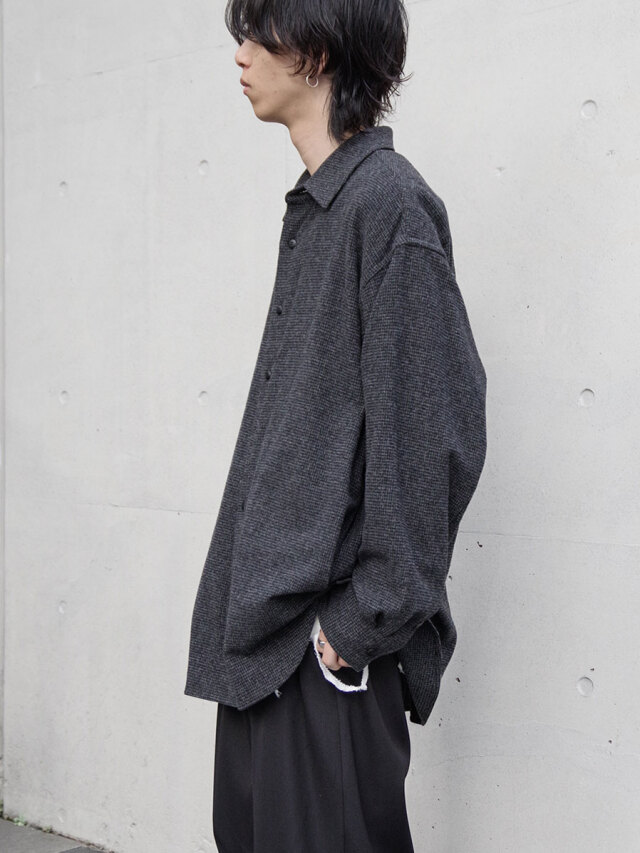 大きくドロップしたショルダーラインやゆとりある身幅が生む、力の抜けたルーズシルエットが特徴。両脇にはシームポケットを備えており、シャツとしても軽アウターとしても活躍する汎用性の高いアイテムです。