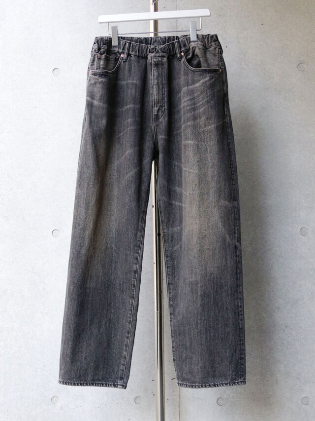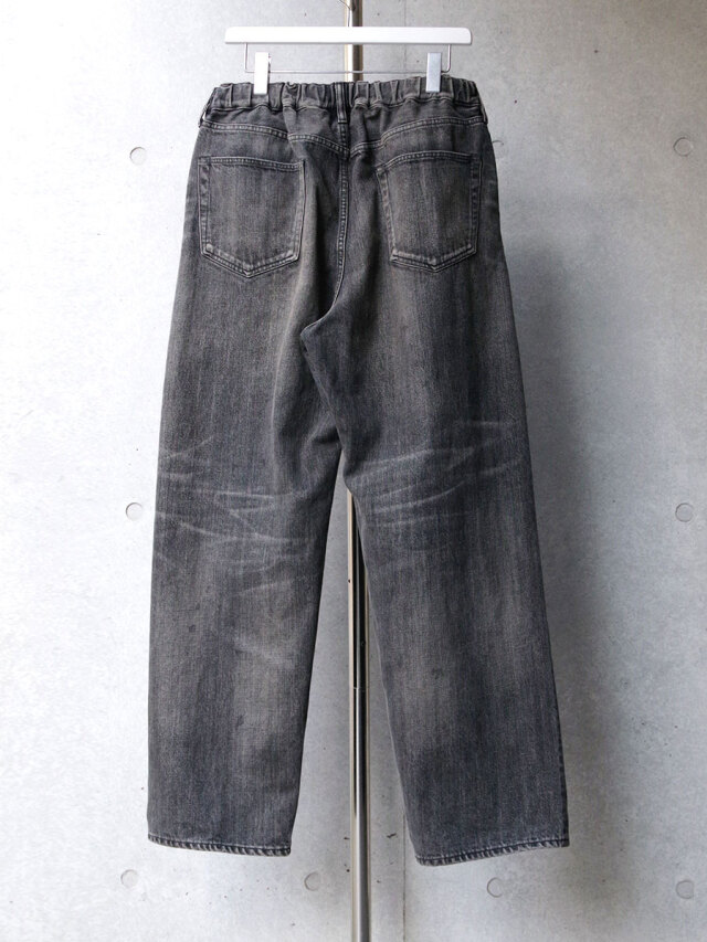 一見シンプルな5ポケットパンツのデザインですが、ウエストにゴムを入れたイージーパンツ仕様。同ブランドからリリースされているBELTED TROUSERSに比べ、腰回りをややワイドに設定し、裾周りをスッキリさせることでリラックス感のあるテーパードラインが特徴となっています。