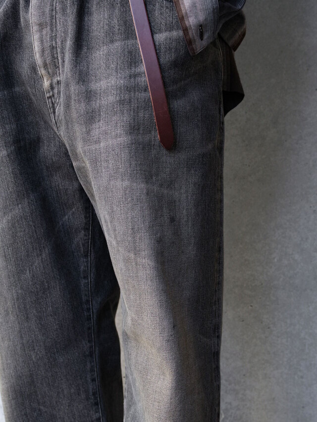 At first glance, it looks like a simple 5-pocket pants design, but it is easy pants with elastic waistband. Compared to the BELTED TROUSERS released by the same brand, the waist is slightly wider and the hem is slimmer, giving it a relaxed tapered line.